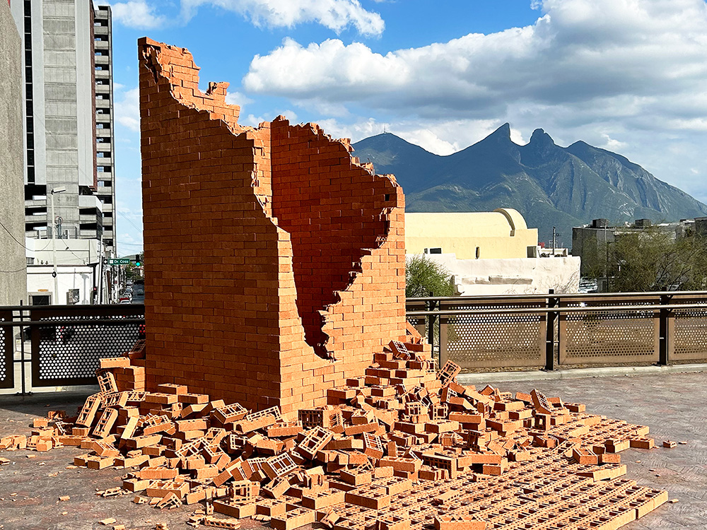 A partir de la producción de bloques de adobe -un material de construcción desde hace tiempo menospreciado, a pesar de las ventajas y bondades en relación a las condiciones climáticas de la región noreste de México-, realizada por un artesano experimentado, se construyó esta escultura pública que, además de subrayar el abandono del uso del adobe y las técnicas artesanales, nos enfrenta al reconocimiento del constante deterioro que sufren las edificaciones históricas no solo de la ciudad de Monterrey y su área metropolitana, sino en otras partes del estado de Nuevo León.